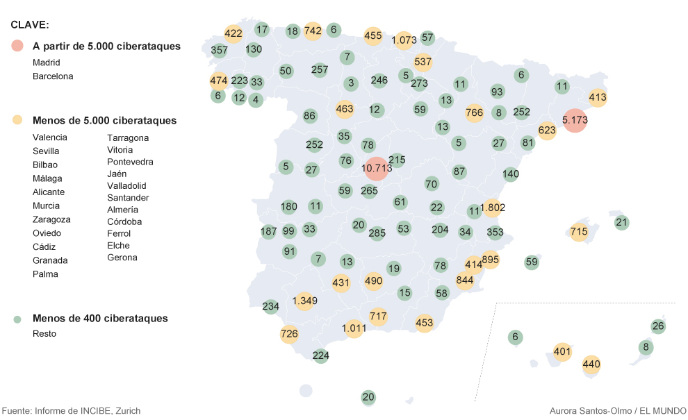 Según un estudio de la U-Tad, los ciberdelitos costaron unos 14.000 millones de euros a las empresas españolas en 2014 después de 18.000 ciberataques realizados contra empresas y organizaciones.