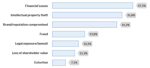 Además del desembolso para recuperarnos de una incursión ilícita en nuestros sistemas, el coste global puedes ser mucho mayor por aspectos como: